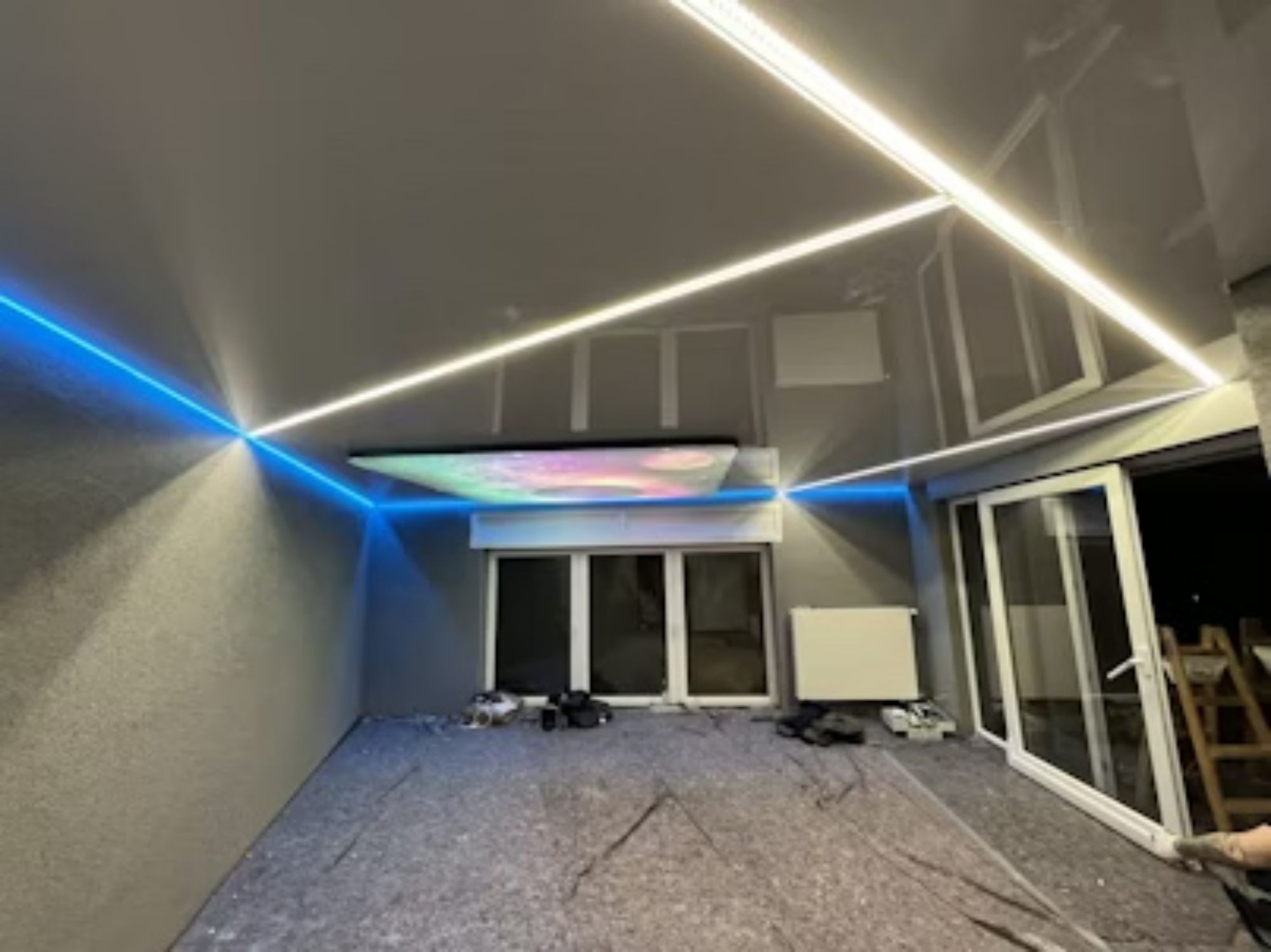 Die Installation von Spanndecken mit integrierter Beleuchtung erfordert Fachwissen und Präzision. Unsere erfahrenen Monteure sorgen dafür, dass Ihre Spanndecke und das dazugehörige Lichtsystem professionell und sauber montiert werden. Von der Vorbereitung des Raumes über die passgenaue Anbringung der Decke bis hin zur Installation der Lichtquellen – wir achten auf jedes Detail, damit das Ergebnis perfekt ist. Durch unsere Expertise garantieren wir eine schnelle und effiziente Umsetzung, die Ihren Raum in neuem Glanz erstrahlen lässt. Vertrauen Sie auf unsere Fachkenntnis für eine stilvolle und funktionale Lichtdecke, die Ihre Erwartungen übertrifft.